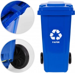 Mobilitu zajišťují gumová kola na kovové ose a ergonomická madla s protiskluzovými úchopy. Stabilizační nožky drží nádobu na kluzkém povrchu. Nádoby splňují EN‑840 a jsou kompatibilní s komunálními svozovými systémy.