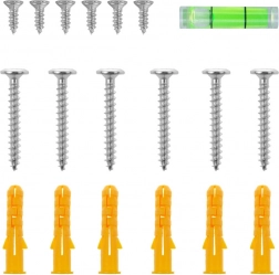 Montážní sada se šrouby, hmoždinkami a praktickou vodováhou usnadní instalaci a zajistí perfektně rovné uchycení.