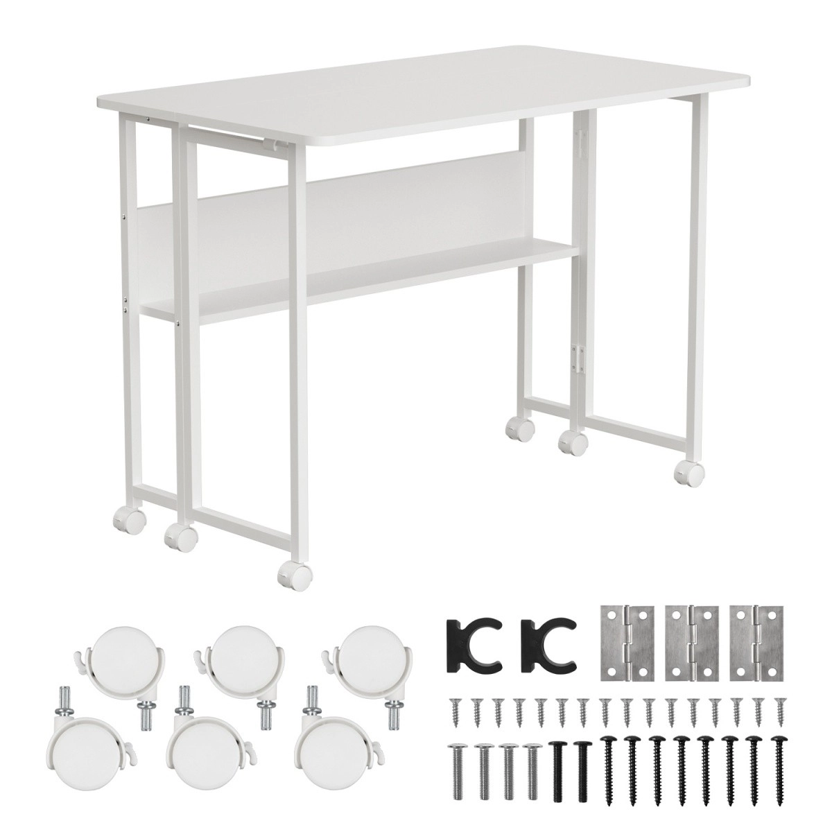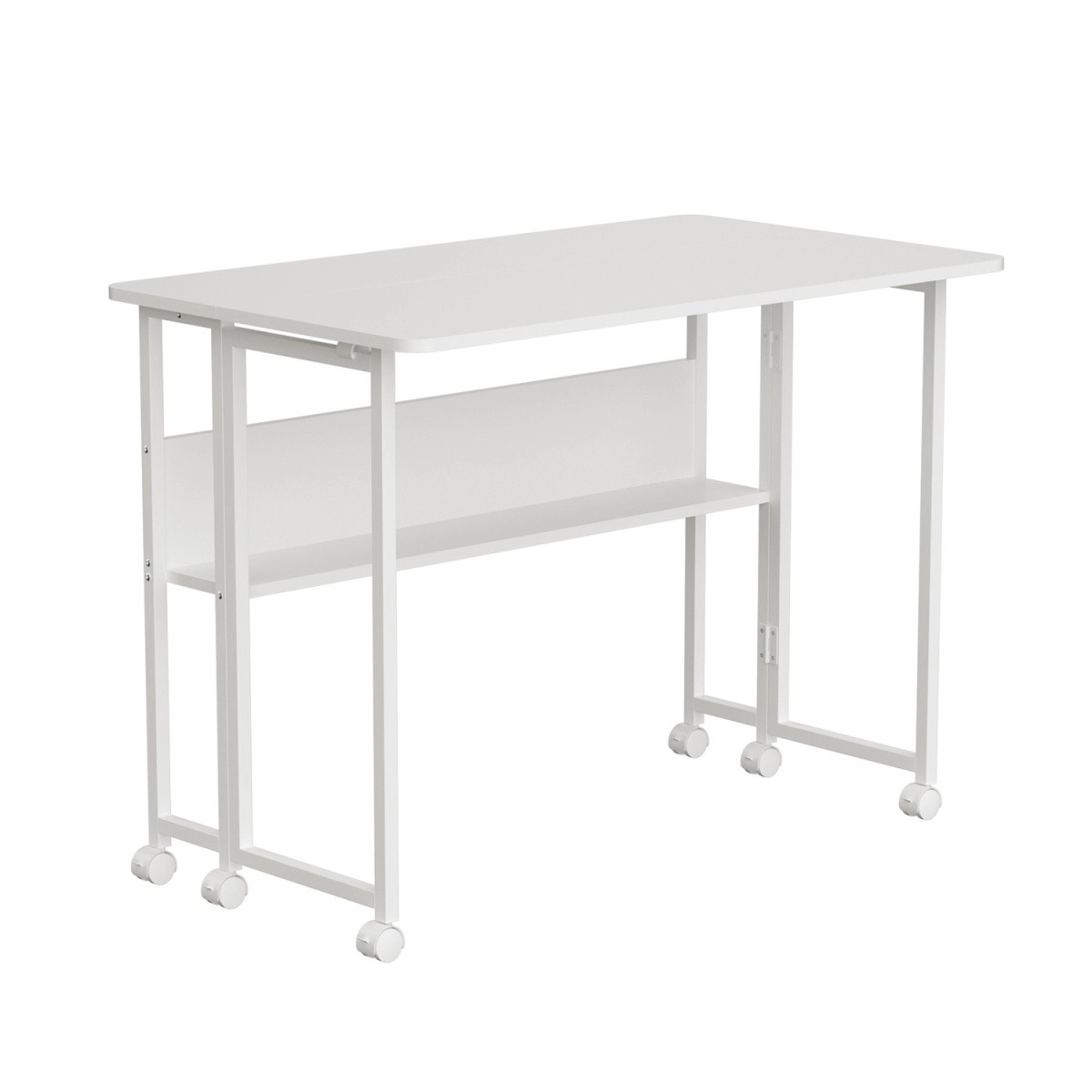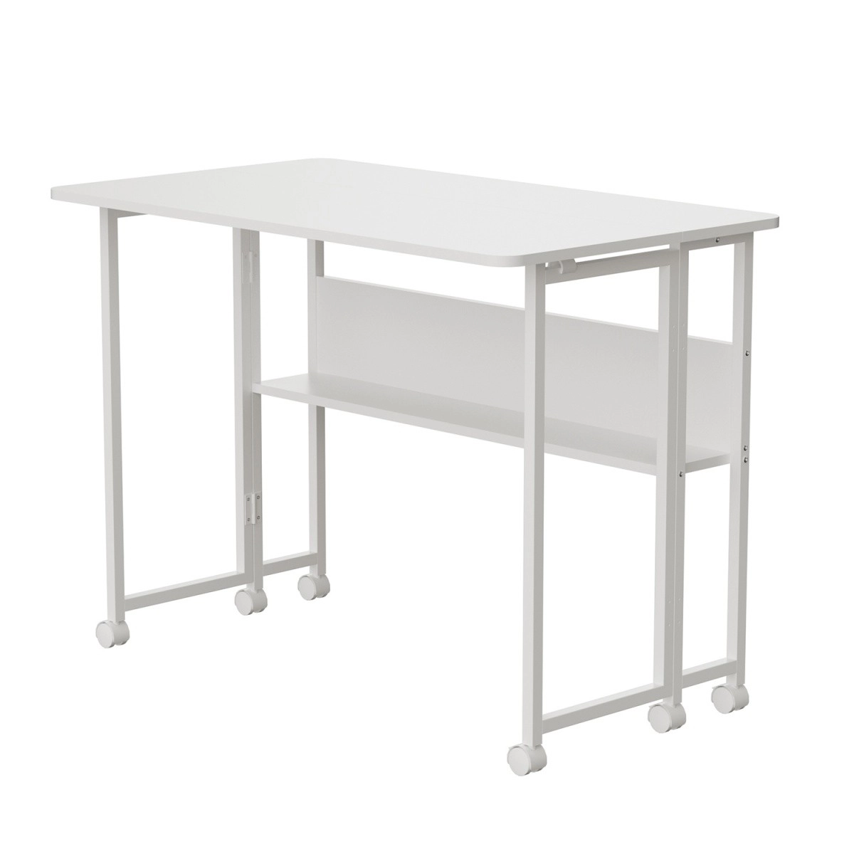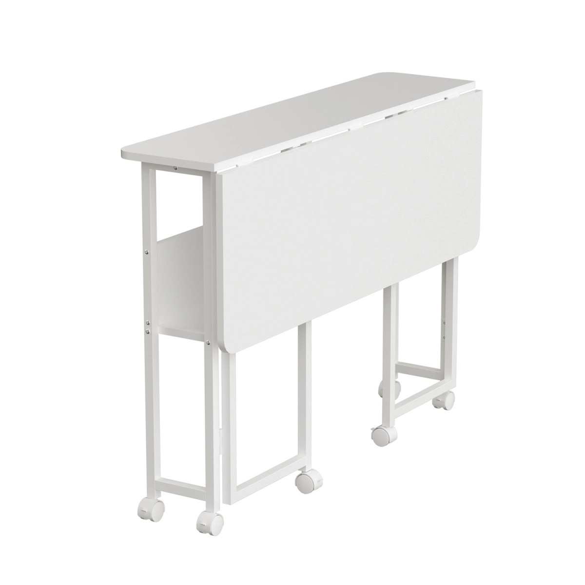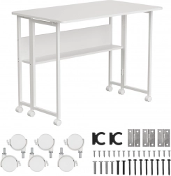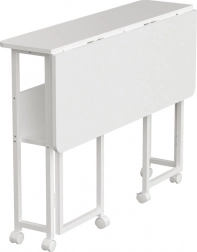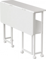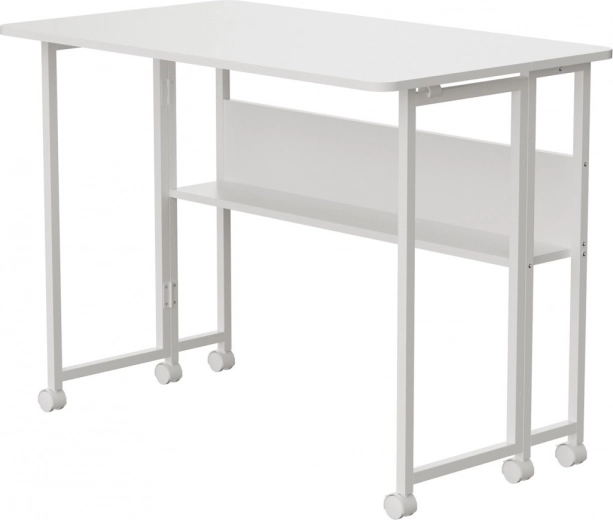 Potřebujete praktické a skladné pracovní místo? Tento mobilní a skládací stůl s bílým povrchem šetří místo a zároveň nabízí plnohodnotnou pracovní plochu. Hlavní deska je tvořena dvěma částmi – během okamžiku ji zmenšíte a po složení zůstane kompaktní hloubka, takže se hodí i do úzkých chodeb, malých kanceláří či garsoniér.