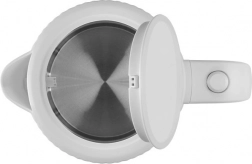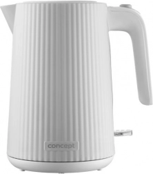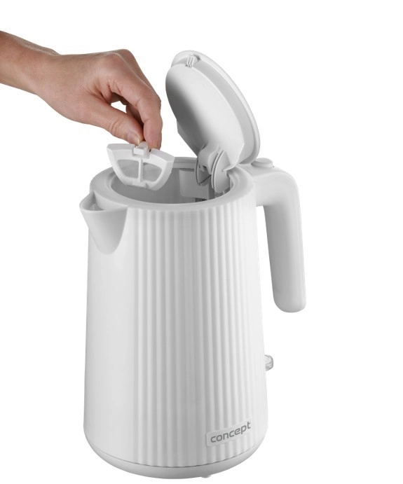Tato bílá rychlovarná konvice z odolného plastu kombinuje moderní ryhovaný vzhled s praktickými funkcemi pro každodenní používání. Objem 1,7 litru pohodlně vystačí pro celou rodinu, zatímco podsvětlený spínač jasně signalizuje provoz. Velké průhledné okénko pro kontrolu hladiny vody zajišťuje maximální přehled.