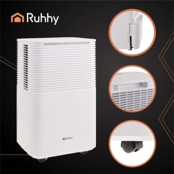 Výkonný odvlhčovač vzduchu RUHHY DRYZIX pro místnosti kolem 30 m² spolehlivě redukuje vlhkost a pomáhá předcházet plísním. Díky automatickému režimu, hygrostatu, časovači a ovládání přes Wi‑Fi udržíte ideální klima bez námahy. Tichý provoz (38 dB), automatické odmrazování, dětská pojistka a kolečka pro snadné přemístění z něj dělají skvělé řešení do ložnice, sklepa i technické místnosti.