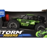 RC buggy je vybaveno velkými, odolnými pneumatikami, které umožňují jízdu na náročných površích.