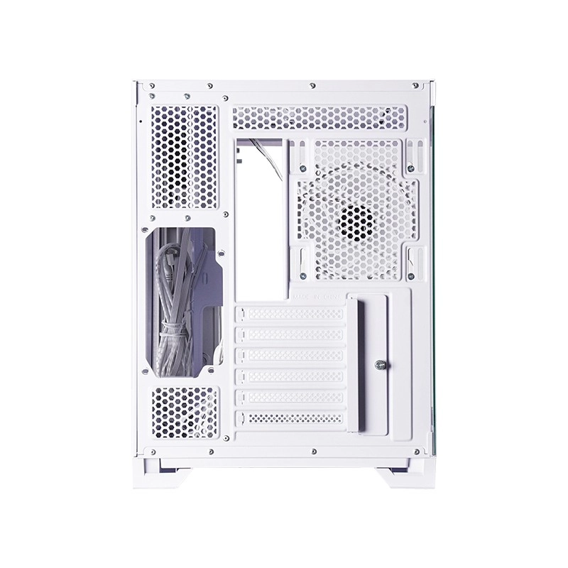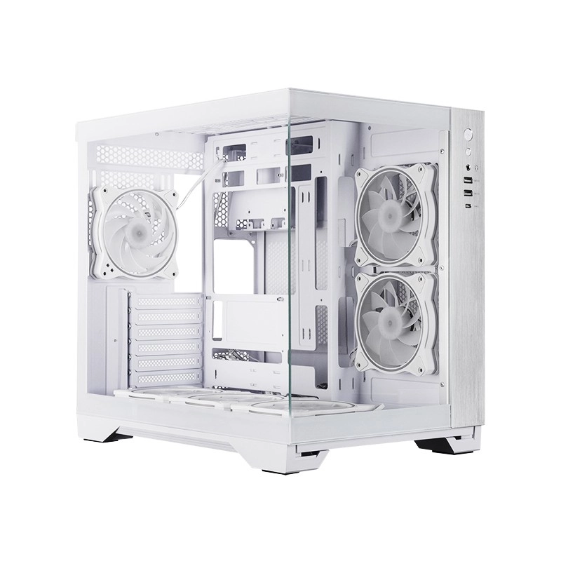 Elegantní PC skříň CHIEFTEC Visio v bílé barvě nabízí oboustranné tvrzené sklo, dvoukomorový design a plnou kompatibilitu s deskami s zadními konektory (ASUS BTF, MSI Project Zero). Z výroby je osazena 6× 120mm ARGB ventilátory a dodává se s řídicí jednotkou pro synchronizaci ARGB a řízení otáček přes základní desku. Podporuje radiátory až 360 mm, grafické karty do 410 mm a chladiče CPU do 175 mm.