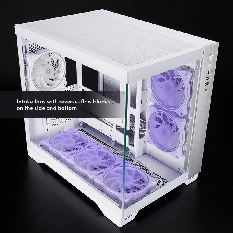Přední i boční panel z tvrzeného skla nechají vyniknout komponentám a ARGB osvětlení. Dvoukomorové uspořádání skryje kabeláž a podpoří průtok vzduchu.