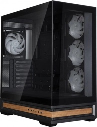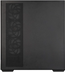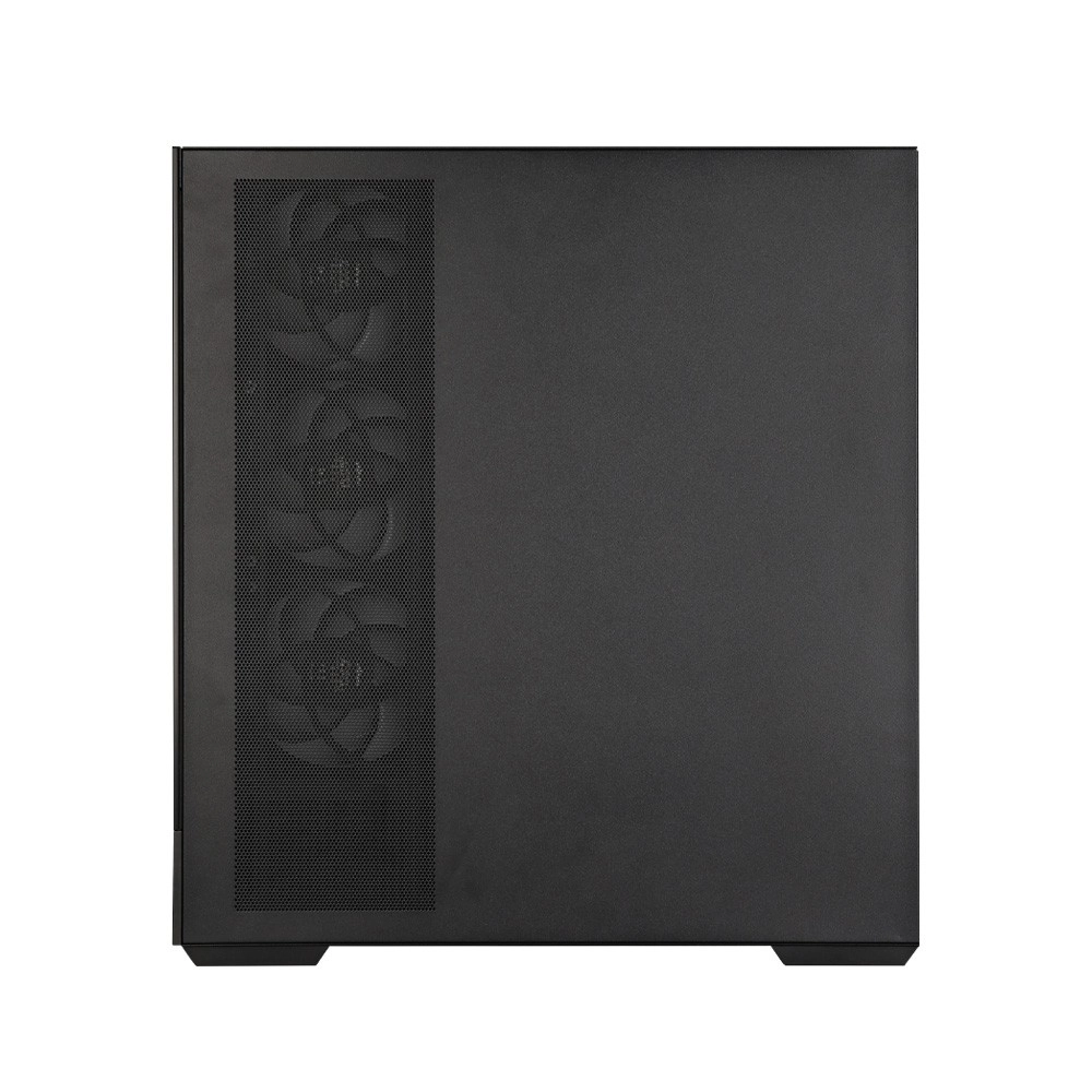 Skříň je optimalizována pro maximální průtok vzduchu díky bočnímu sání a chytrému uspořádání ventilátorů. Ventilátory AF120 minimalizují vibrace, snižují aerodynamický hluk a zvyšují efektivitu proudění. Odnímatelný boční panel usnadňuje montáž i údržbu, zatímco magnetické prachové filtry nahoře a dole omezují usazování prachu a podporují rychlý odvod tepla.