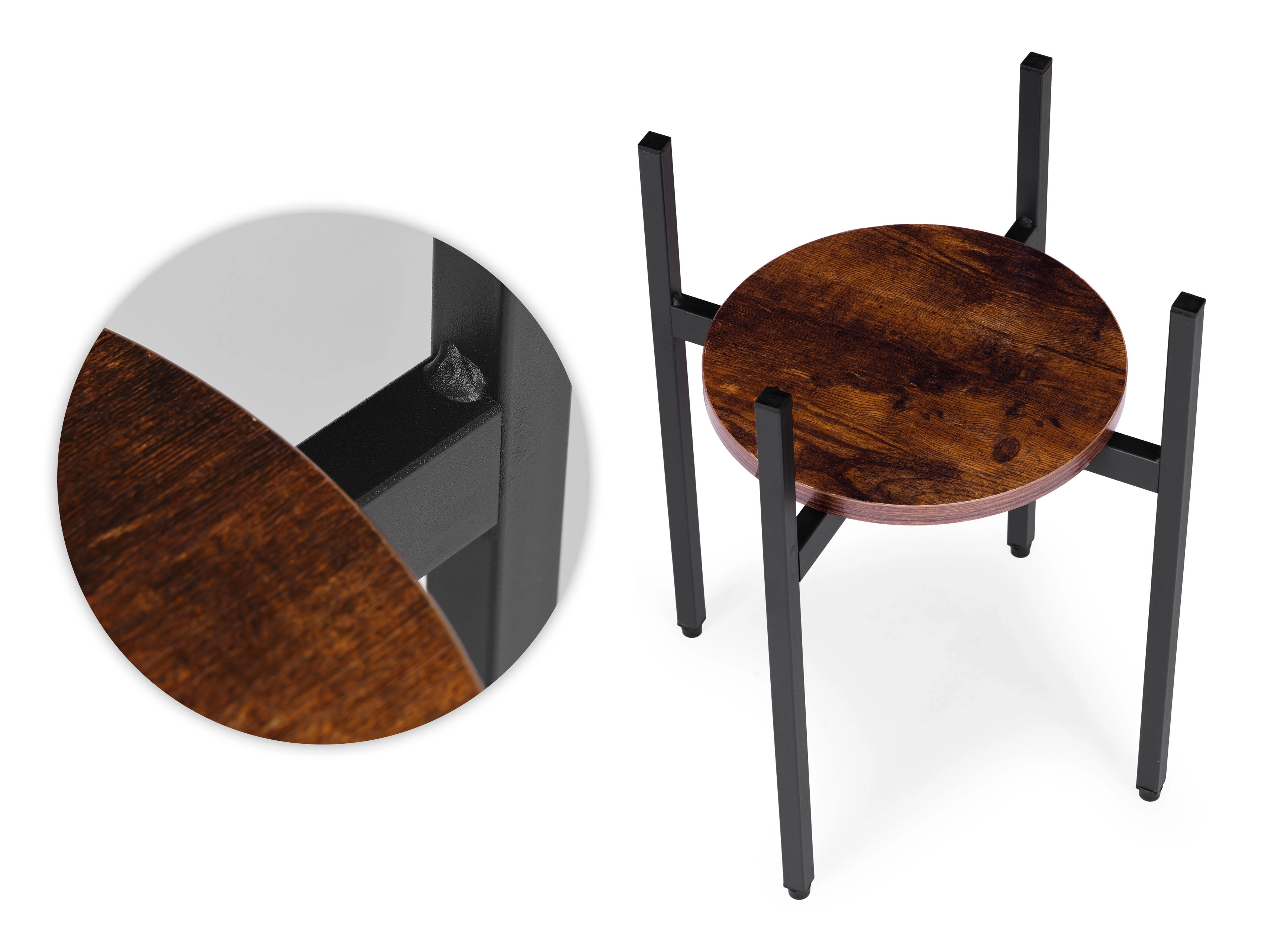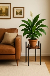 Vystavte své oblíbené rostliny stylově a s důrazem na prostor. Tento stojan v industriálním duchu kombinuje práškově lakovanou ocel pro dlouhou životnost a odolnost proti korozi s policí z dřevotřísky v dekoru přírodního dřeva. Skvěle zapadne do moderních i minimalistických interiérů a podtrhne zeleň v každé místnosti.