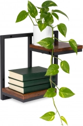 Stylová závěsná police na květiny v loft designu kombinuje pevný ocelový rám s dřevodekorem polic. Díky dvoupolicovému uspořádání ušetříte místo a elegantně vystavíte bylinky, květiny či dekorace. Součástí je kompletní montážní sada, nosnost až 10 kg a odolné práškově lakované provedení pro dlouhou životnost.