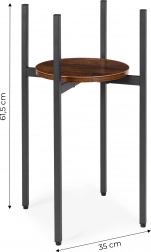 Kruhová deska z dřevotřísky v tmavém dřevodekoru dodá interiéru loftový akcent a poskytne stabilní plochu pro květiny, vázy či drobné dekorace.