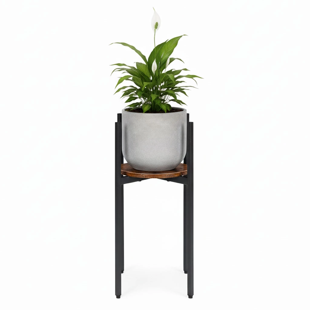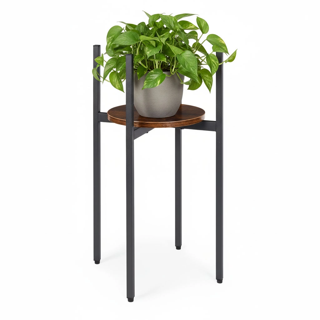 Elegantní stojan na květiny v loft stylu od ModernHome zaujme moderním industriálním designem, stabilní ocelovou konstrukcí a praktickou dřevotřískovou policí. Díky kompaktním rozměrům se hodí do obýváku, kanceláře i na krytou terasu a unese až 20 kg. Protiskluzové nožky chrání podlahu a zajistí jistotu při vystavení rostlin či dekorací.