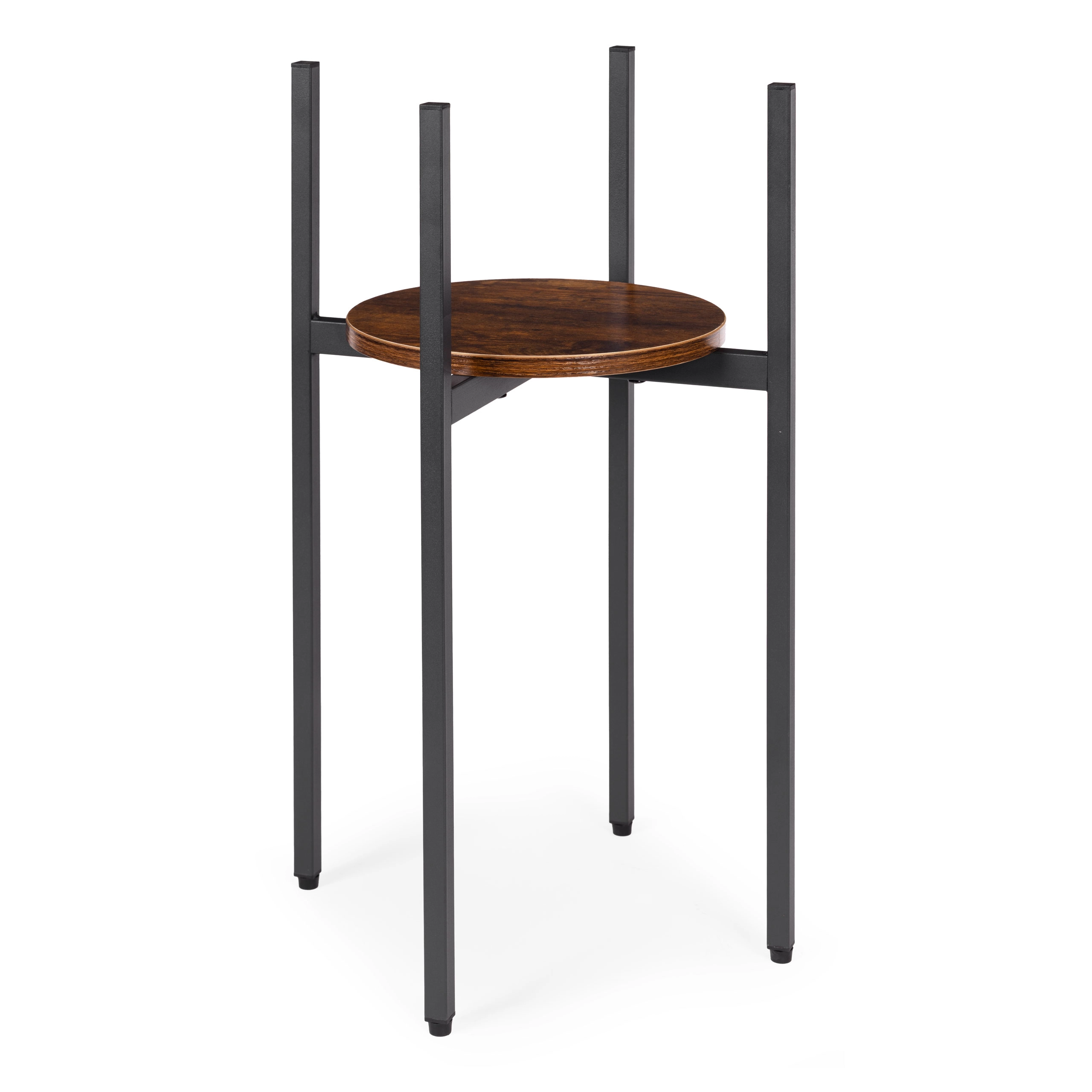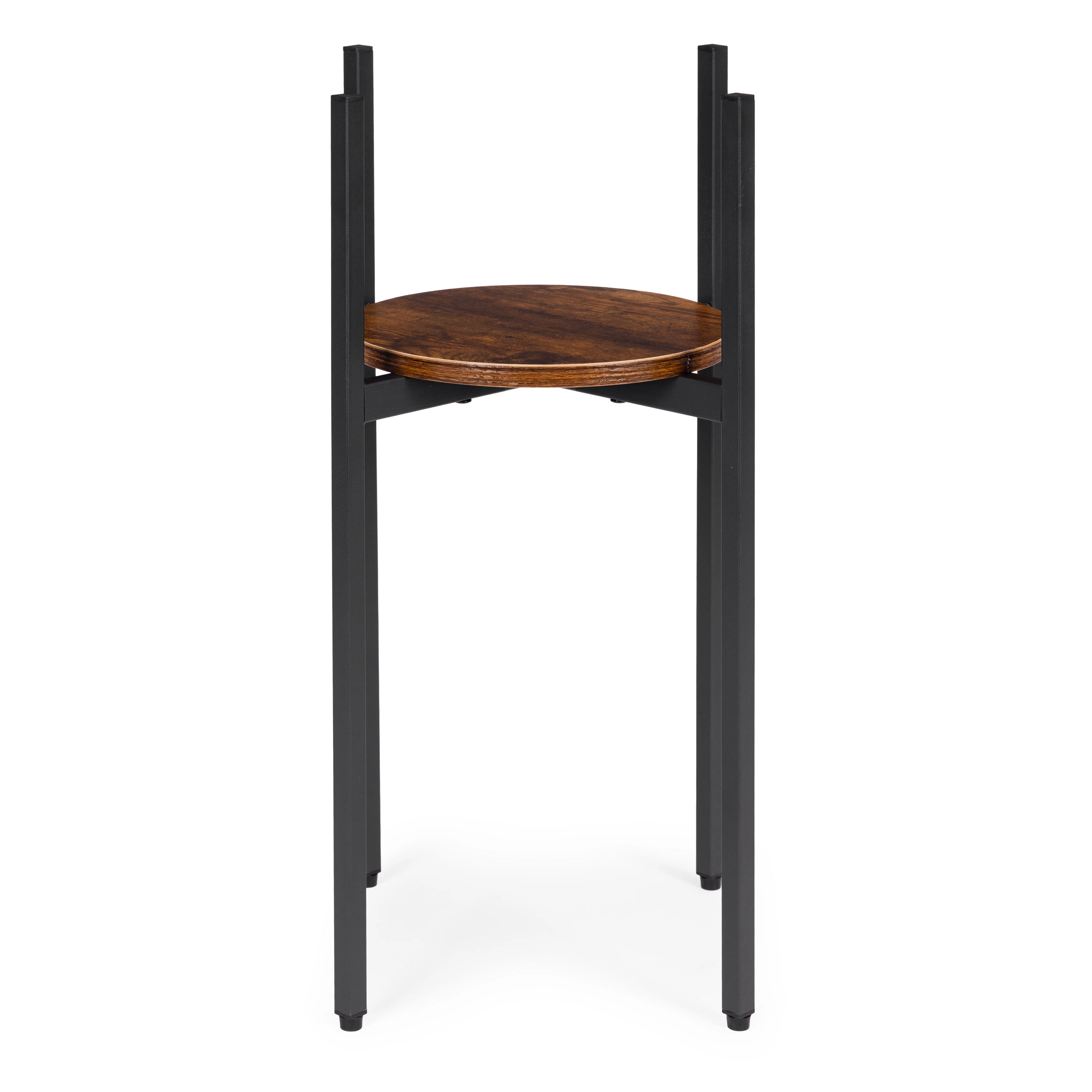 Tento vysoký stojan na květiny v industriálním stylu zvýrazní vaše rostliny a dodá interiéru vzdušnost i eleganci. Práškově lakovaná ocel je odolná proti korozi i poškrábání, zatímco kruhová police z dřevotřísky v dekoru přírodního dřeva podtrhuje loftový charakter. Díky štíhlému půdorysu snadno zapadne do malých prostor u okna, vedle pohovky či do vstupní haly.