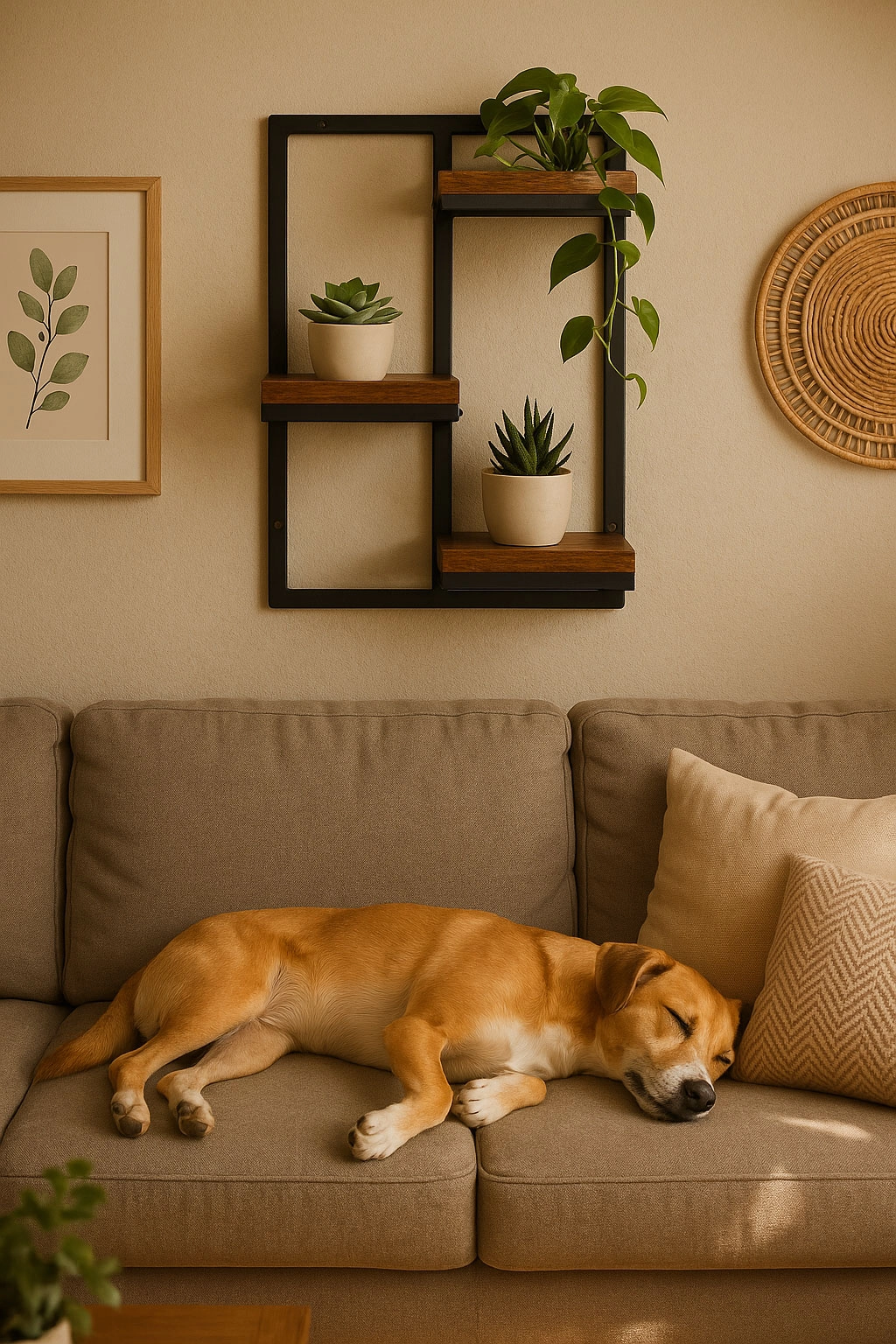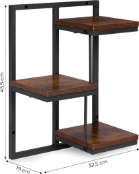 Střídavě uspořádané tři police poskytují dostatek místa pro bylinky, sukulenty i dekorace, aniž by zabíraly podlahovou plochu.