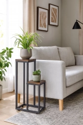 Vystavte své oblíbené květiny, bylinky či dekorace stylově a přehledně. Stojan na květiny v loft designu kombinuje moderní vzhled s odolným zpracováním, takže se hodí do každého interiéru – od obývacího pokoje přes kuchyň až po pracovnu. Dvě různé výšky polic umožní efektní aranžmá převislých i vzpřímených rostlin.