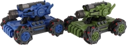 Sada dvou moderních RC tanků je ideální pro domácí tankové bitvy. Robustní konstrukce, pohon všech kol a speciální více-směrná kola umožňují bleskové změny směru, překonávání překážek i efektní boční drift. Realistické světelné a kouřové efekty posouvají hru na další úroveň.