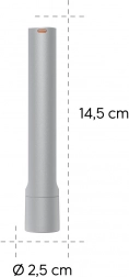 Štíhlé kovové tělo s poutkem na zápěstí se pohodlně drží a snadno přenáší – vždy připravená po ruce.