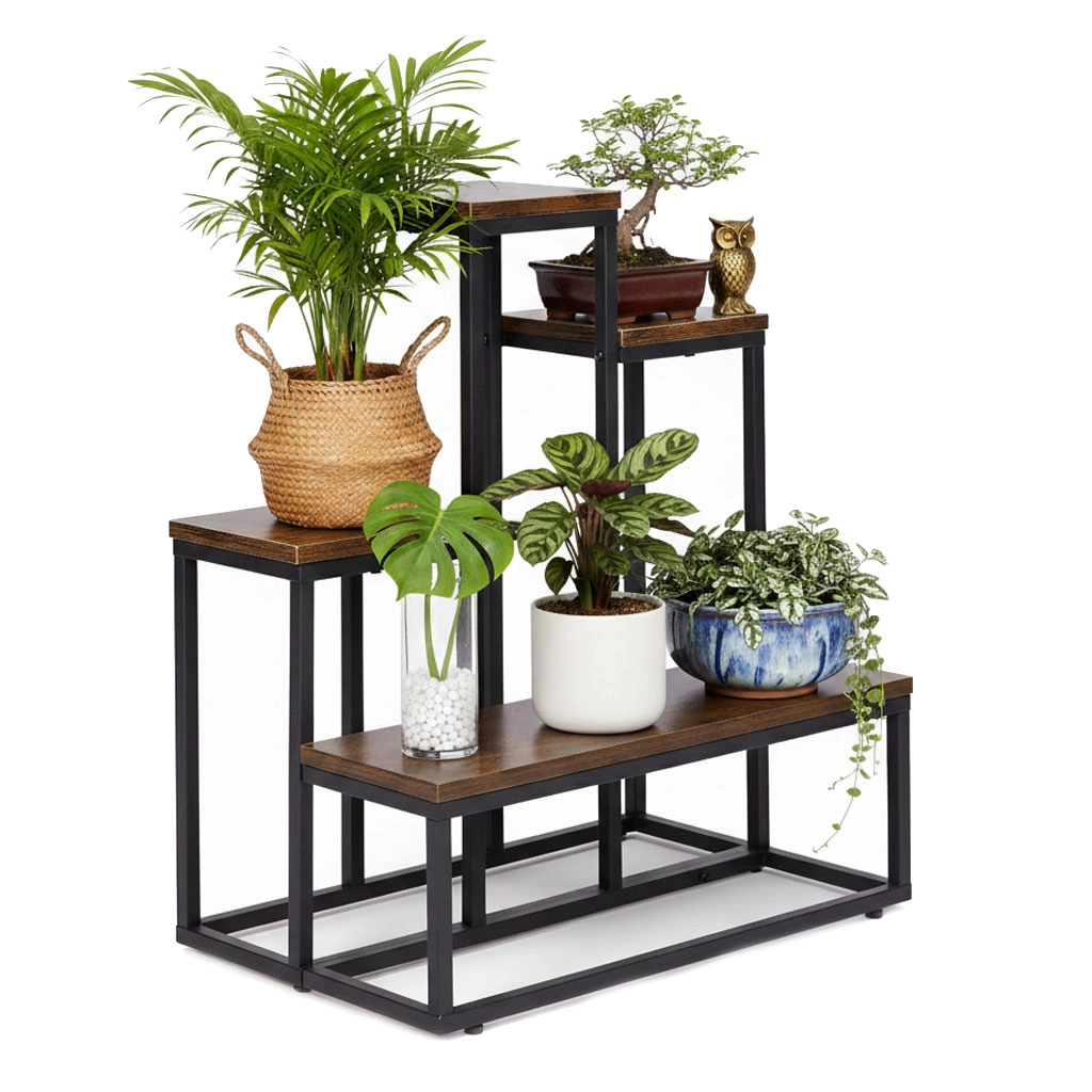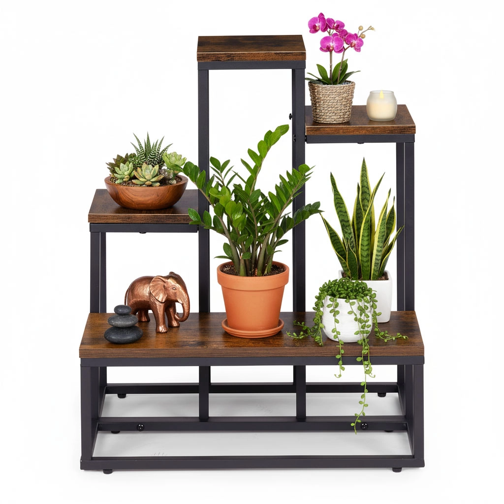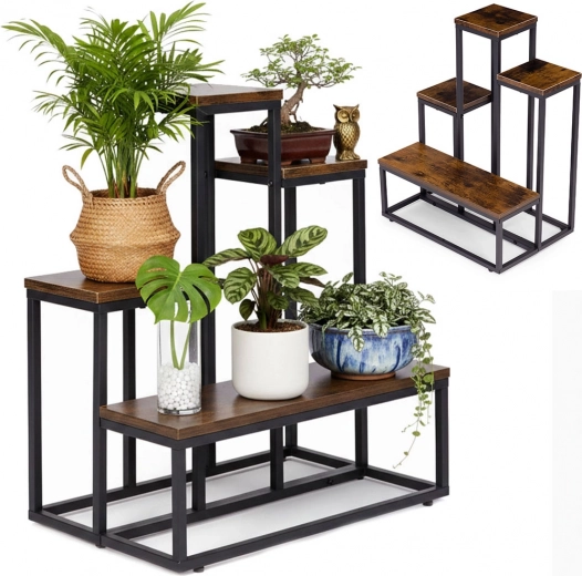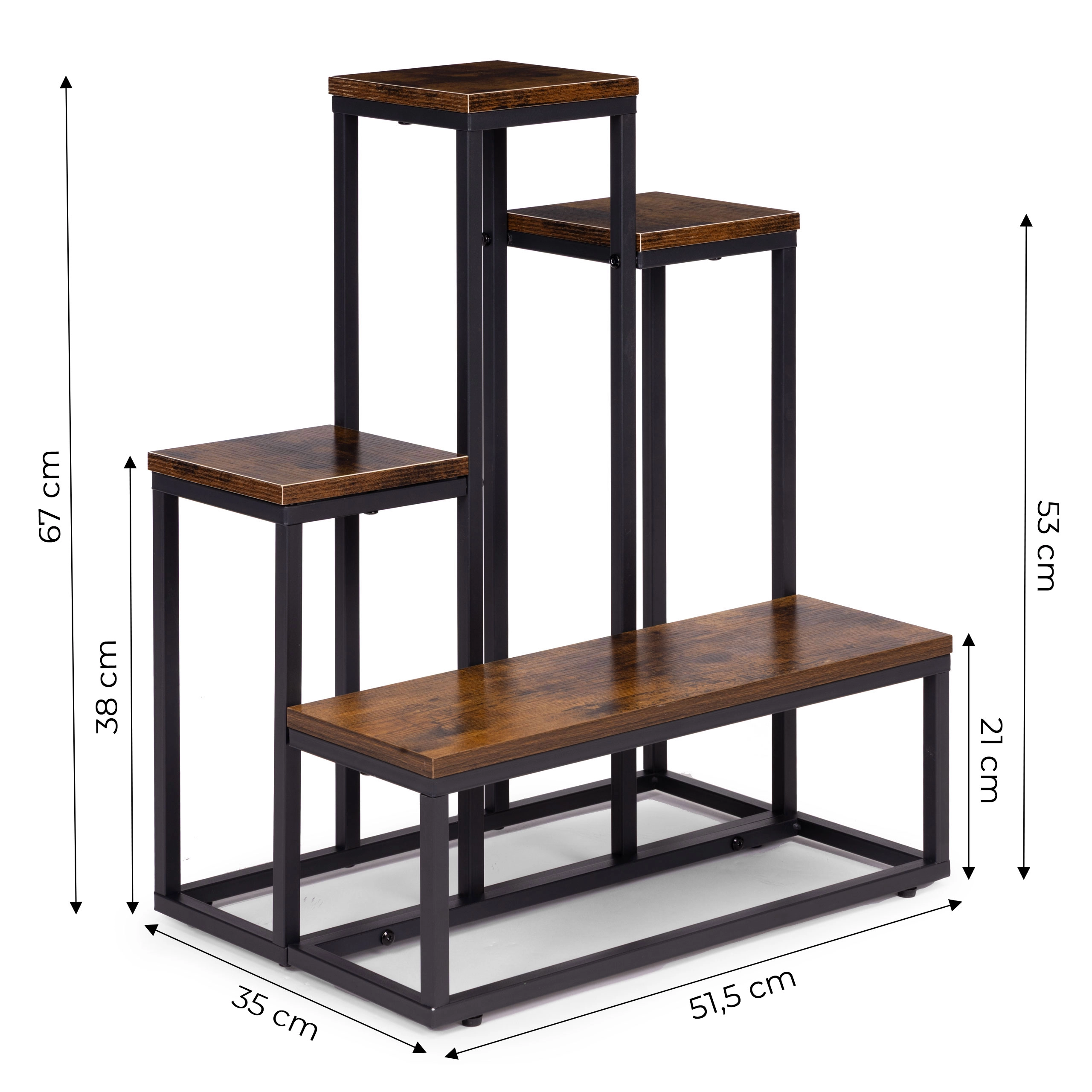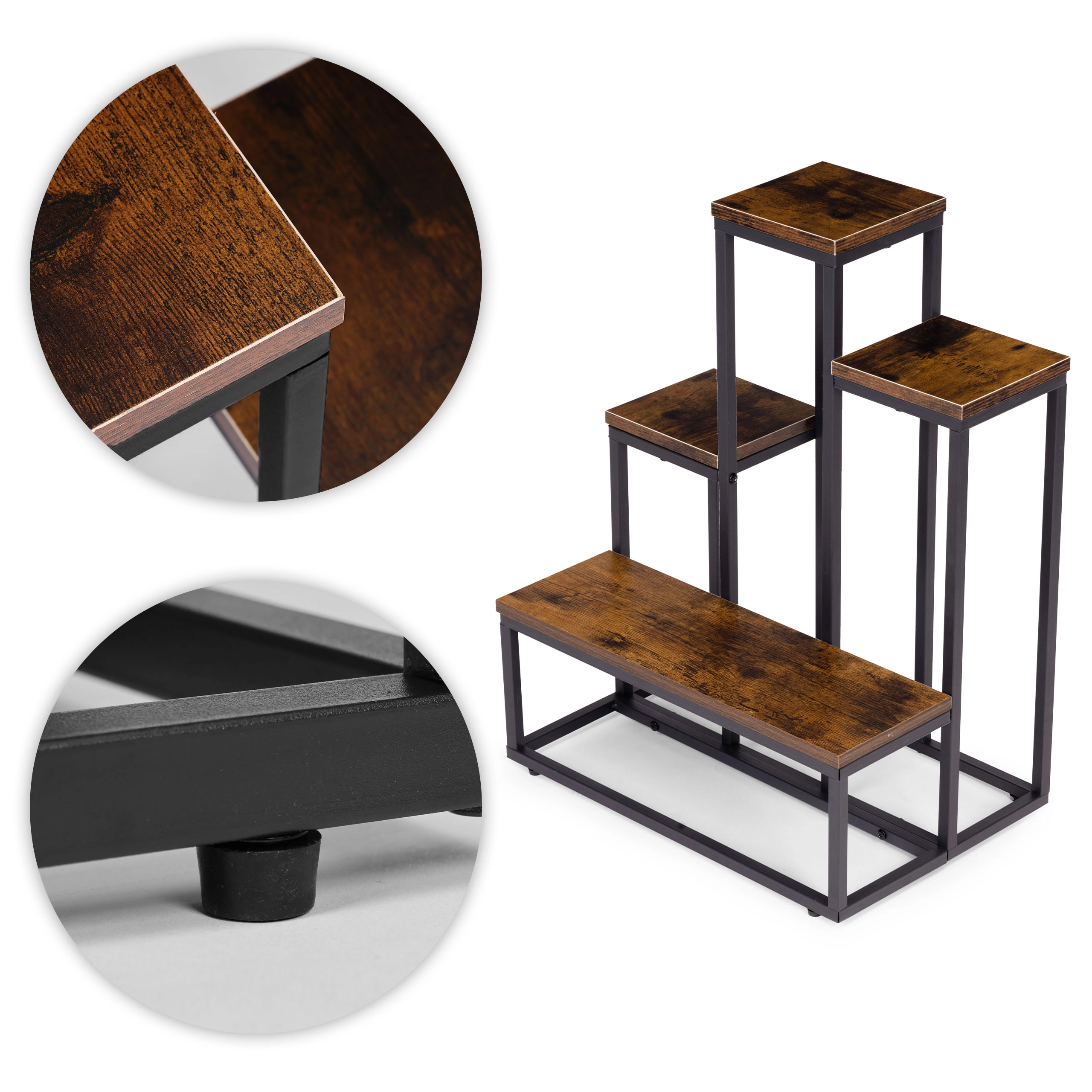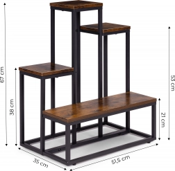 Vystavte své oblíbené rostliny stylově a přehledně. Stojan na květiny v industriálním designu se díky univerzálnímu provedení snadno začlení do moderního interiéru i domácí kanceláře. Víceúrovňové uspořádání podporuje lepší přístup ke světlu a umožní vytvořit elegantní zelenou kompozici v každé místnosti.