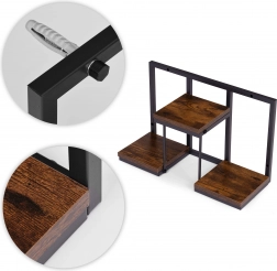 Stylová nástěnná police pro rostliny v industriálním designu kombinuje pevný ocelový rám s praktickými dřevodekor policemi. Nabízí tři úrovně pro bylinky, sukulenty i závěsné rostliny, snadnou montáž na stěnu včetně upevňovací sady a nosnost až 15 kg – ideální do kuchyně, obýváku i koupelny.