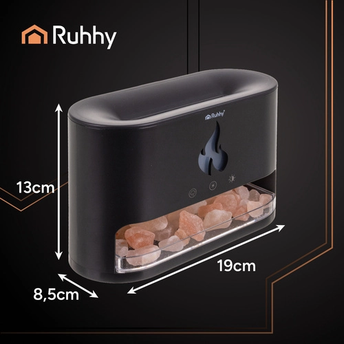 Užijte si příjemnou atmosféru plamínků bez otevřeného ohně. Aroma difuzér RUHHY s LED efektem krbu a RGB podsvícením promění každý večer v relaxační rituál. Přidejte pár kapek oblíbeného esenciálního oleje a nechte vůni i mlžinu jemně provonět interiér.