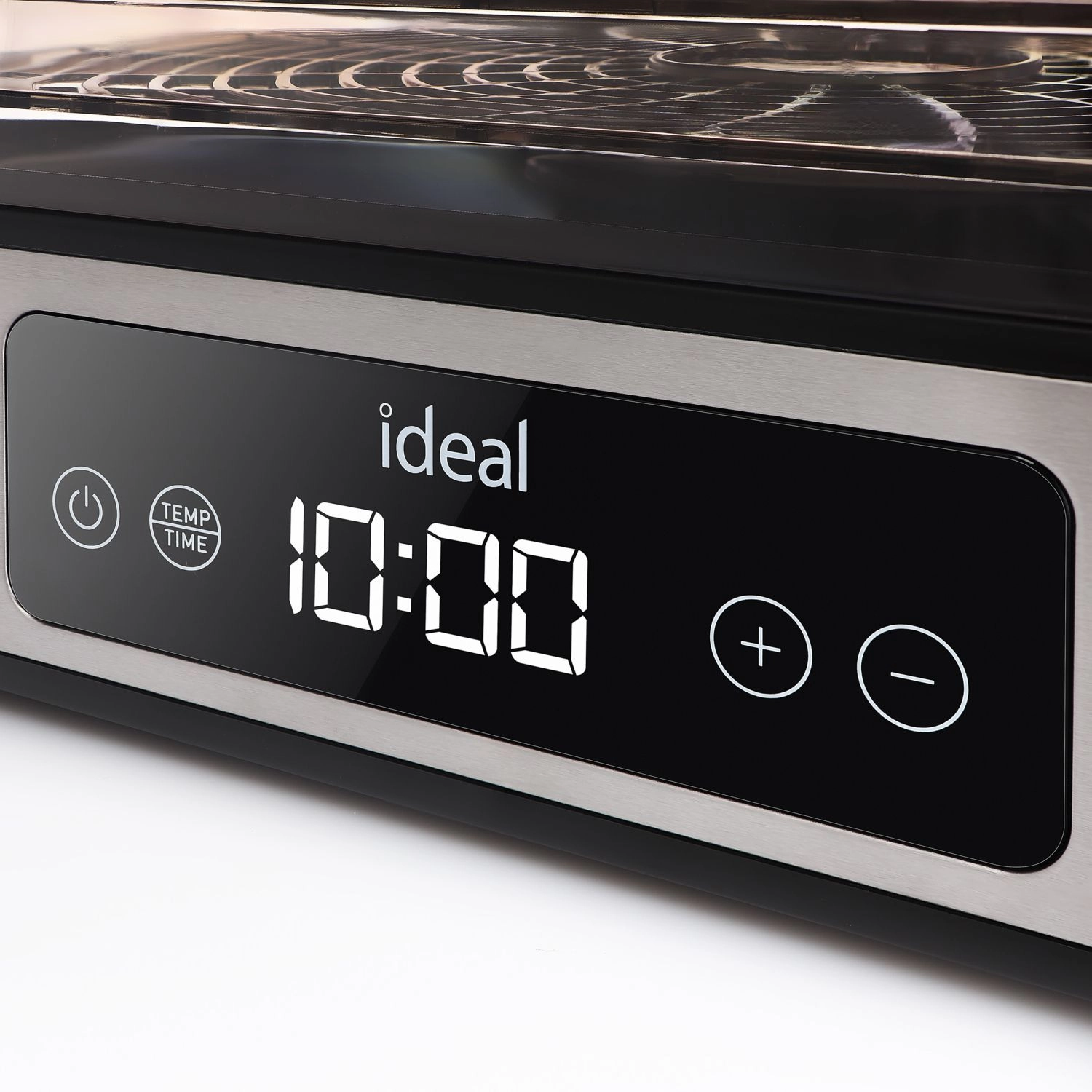 - Plynulá regulace teploty, nastavitelná výška táců, časovač, ochrana proti přehřátí