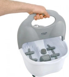 Masážní přístroj na nohy ADLER AD 2167 přináší kombinaci hřejivé vodní lázně a mechanické stimulace chodidel. Díky funkci udržování teploty si vychutnáte dlouhou, příjemně teplou koupel nohou bez rychlého chladnutí vody. Výměnné a integrované masážní prvky zajišťují hlubokou relaxaci, zmírnění napětí a podpoří mikrocirkulaci.