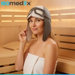 Objevte komfort a ochranu v jednom. Sauna čepice ISOMEDIX ve střihu „pilotka“ účinně izoluje pokožku hlavy od žáru, udržuje tepelnou rovnováhu a pomáhá předcházet přehřátí a vysušení vlasů. Přírodní filc je prodyšný a pohlcuje přebytečnou vlhkost, takže se budete cítit příjemně i během delších seancí.