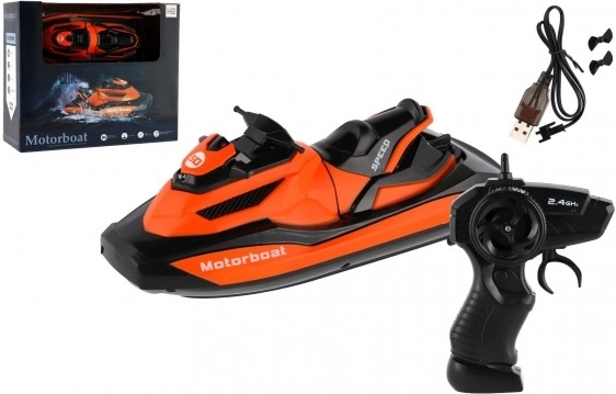 Oranžový plastový motorový skútr/člun je perfektní volbou pro děti i dospělé, kdo hledají aktivní vodní hračku. Díky jeho kompaktní velikosti 22 cm se snadno přenáší a ovládá, což z něj činí ideální doplněk pro rodinné výlety k vodě.