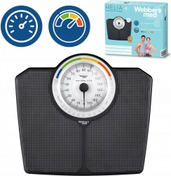 Klasická mechanická osobní váha WEBBER s nosností až 180 kg nabízí spolehlivé měření bez baterií. Velký čitelný ciferník s dělením po 1 kg umožňuje rychlé a přesné odečty, barevné zóny a funkce BMI pomáhají s orientační kontrolou hmotnosti. Odolné provedení, protiskluzový povrch a elegantní černý design skvěle zapadnou do každé koupelny.