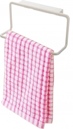 Věšák stačí pouze zaháknout za dvířka vybrané skříňky. Díky tomu, že se tak lehce používá, nemusíte nikde nic lepit nebo vrtat. Snadno ho zavěsíte a zase přesunete jinam. Držák je vyrobený z polypropylenu. Snadno omyvatelný.