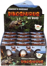 Ponořte vajíčko do misky s vodou a sledujte, jak se během 24–48 hodin začne skořápka postupně otevírat. Přibližně do 72 hodin se z vajíčka vyklube malý dinosaurus – bude to T‑Rex, stegosaurus, brontosaurus, nebo úplně jiný druh? Každé vajíčko skrývá překvapení, což z něj dělá ideální dárek pro děti.