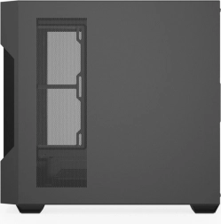 Praktický boční panel z tvrzeného skla na pantech s rychloupínacím mechanismem umožňuje okamžitý přístup do interiéru bez šroubování. Interiér je připraven pro ATX/M-ATX/ITX základní desky, grafické karty do 425 mm a CPU chladiče do 170 mm. Kabelové průchodky s gumovými krytkami pomáhají udržet perfektní cable management a čistý vzhled.