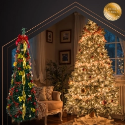 Vychutnejte si kouzlo Vánoc bez práce navíc. Stromek RUHHY má chytrou pop-up konstrukci, takže ho postavíte a složíte během chvilky. Elegantní kombinace zlata a červené působí slavnostně a nadčasově, skvěle se hodí do obýváku, kanceláře i menších bytů.