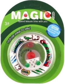 Průměr 8 cm z ní dělá ideální zábavu do kapsy – do auta, do čekárny i na výlety. Hra je vyrobena z lehkého plastu a dodává se na kartě 12 × 16 cm v různých barevných a tematických motivech (např. sportovní či dinosauří), které děti zaujmou.