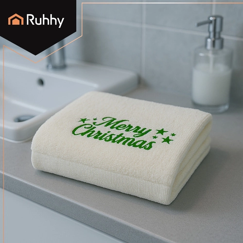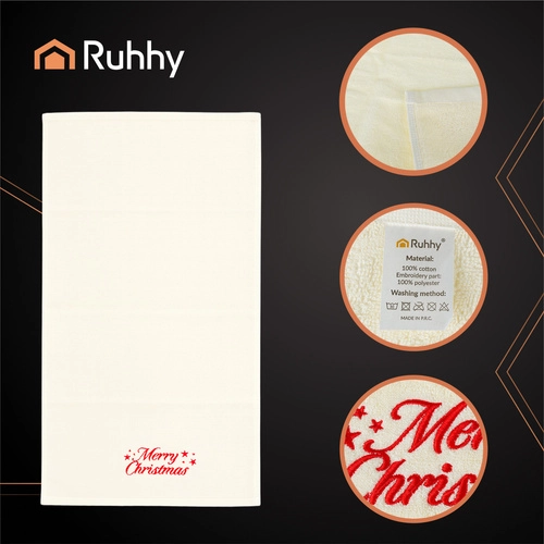 Stylová sada dvou vánočních ručníků RUHHY v barvách červená, zelená a bílá přinese do koupelny sváteční atmosféru. Jsou z měkké a velmi savé bavlny, mají elegantní výšivku „Merry Christmas“ a pohodlný rozměr 50×100 cm. Skvělé pro každodenní použití, pratelné v pračce a ideální také jako dárek.