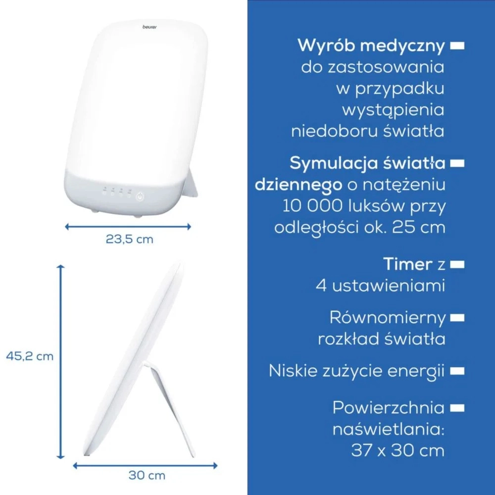 Lampa denního světla BEURER TL 85 je navržena pro účinnou světelnou terapii v období, kdy chybí sluneční svit. Díky moderní LED technologii poskytuje mimořádně rovnoměrné a jasné světlo, které napodobuje denní světlo a pomáhá při pocitech únavy, nízké energie a zhoršené nálady.