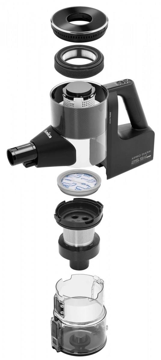 Bezpečnost zajišťuje ochrana baterie proti přehřátí a měkký start s plynulým náběhem výkonu. Součástí je praktický stojan pro vysavač i příslušenství – bez vrtání, kamkoli se hodí. Dodatečný předmotorový filtr prodlužuje životnost motoru a pomáhá udržet stálý sací výkon.