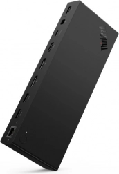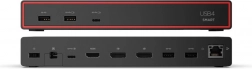 Lenovo ThinkPad USB4 Smart Dock 5500 je moderní dokovací stanice navržená pro plynulou práci v kanceláři i na cestách. Díky rozhraní USB4 s propustností 40 Gb/s snadno připojíte externí displeje s vyšším rozlišením a obnovovací frekvencí, rychle přenesete data a současně budete napájet svůj notebook.