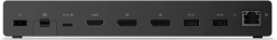 USB‑A a USB‑C pro periferie a nabíjení, více DisplayPort/HDMI pro externí displeje, gigabitový Ethernet a vstup napájení – vše v jednom kompaktním těle.
