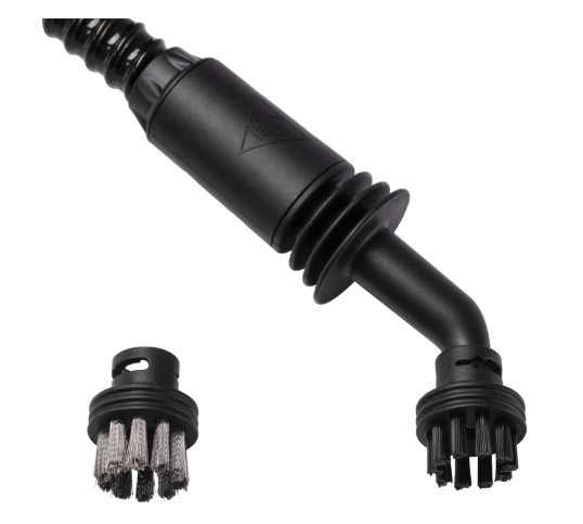 V balení najdete kovový a nylonový kartáček, flexibilní hadici, tři 33cm prodlužovací trubice, velkou trysku, plochý kartáč, podlahovou hubici s adaptérem a utěrky pro různé povrchy.