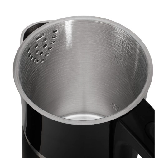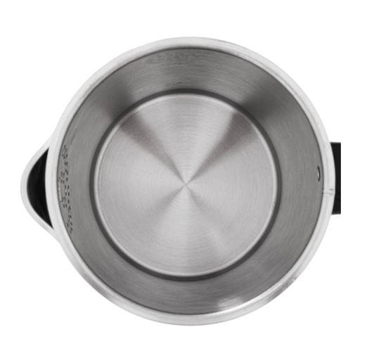 Plochá topná deska ze nerezové oceli zajišťuje rychlé přivedení vody k varu a snadné čištění dna konvice.