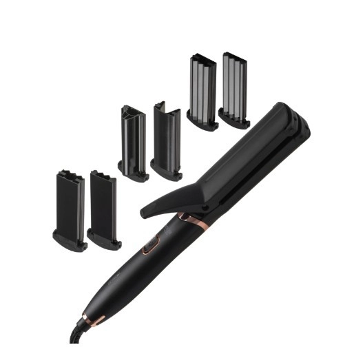 - 5 vyměnitelných nástavců: žehlička, krepovačka, vlnkovačka, kulma 19 mm, kulma 32 mm