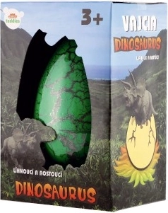 Toto barevné maxi vajíčko potěší jak kluky, tak i holky. Ve vejci je ukryto překvapení ve formě dinosaura. Aby se dinosaurus vylíhnul, je nutné vajíčko ponořit do misky s vlažnou vodou. Přibližně za 24 - 48 hodin skořápka popraská a dinosaurus se začne klubat. Děti tak mohou postupně pozorovat, jak se z vajíčka líhne dinosaurus. Bude to T-Rex, stegosaurus nebo brontosaurus? Nebo nějaký úplně jiný dinosaurus? To zjistí za přibližně 72 hodin.