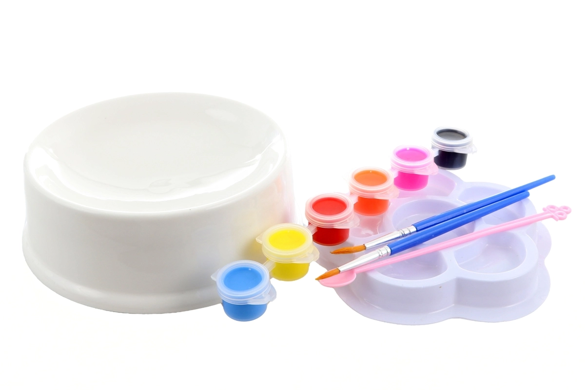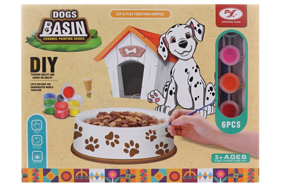 Vytvořte svému mazlíčkovi originální jídelní misku, kterou si sami ozdobíte. Tato keramická miska na krmení pro psy podporuje kreativitu a představivost – balení obsahuje vše potřebné k malování. Ideální dárek pro děti od 3 let i milovníky psů. Keramická miska, 6 barev, 2 štětce, paletka, průměr misky 12 cm.