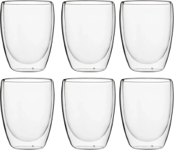 Termo sklenice jsou ručně vyráběny z lehkého žáruvzdorného borosilikátového skla s dvojitou stěnou, které díky vytvořenému vakuu dokáže dlouho udržet ideální teplotu a nepřenáší teplo ani chlad na vnější část. Díky termoizolačním vlastnostem tak zůstává sklenice i při použití horkého nápoje chladná a nepálí. V případě studených nápojů zase nedochází k rosení vnější stěny sklenic, nápoj Vám tak rychle nezteplá a led neroztaje.
