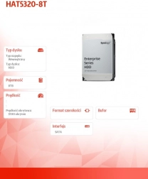 Výkonný 3,5" pevný disk Synology s kapacitou 8 TB je navržen pro náročné podnikové NAS a nepřetržitý provoz. Nabízí rychlost 7200 ot./min, vyrovnávací paměť 512 MB a rozhraní SATA III 6 Gb/s pro spolehlivý a rychlý přenos dat. Díky MTBF 2 miliony hodin a roční zátěži 550 TB poskytuje špičkovou spolehlivost, zatímco technologie trvalé vyrovnávací paměti zápisu pomáhá chránit data při výpadcích napájení.