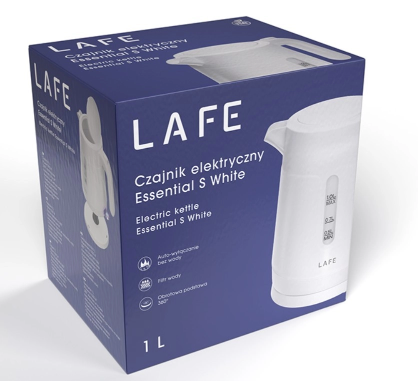 Praktická a spolehlivá rychlovarná konvice LAFE Essential S v bílé barvě přináší rychlé vaření vody, jednoduché ovládání a čistý, moderní design. Díky kompaktním rozměrům skvěle zapadne na kuchyňskou linku a objem 1 l je akorát na čaj, kávu či instantní polévku.