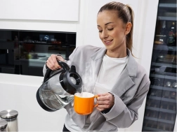 Odolné sklo umožní kontrolu hladiny vody, modré LED světlo elegantně signalizuje ohřev a dodá kuchyni moderní vzhled.