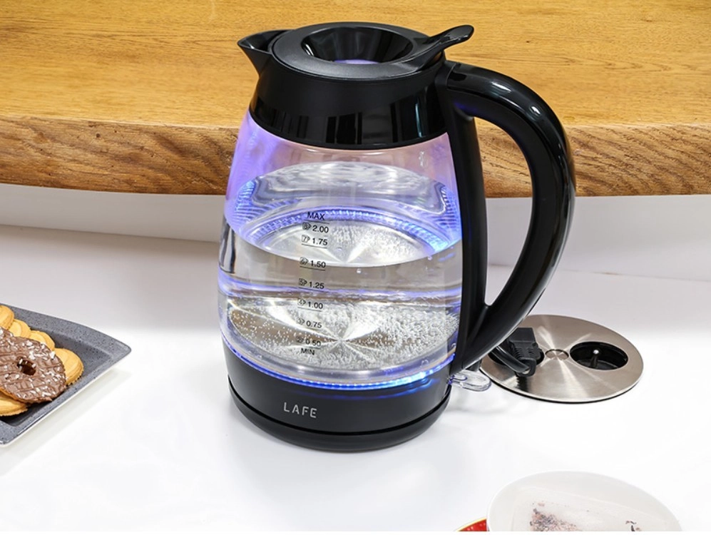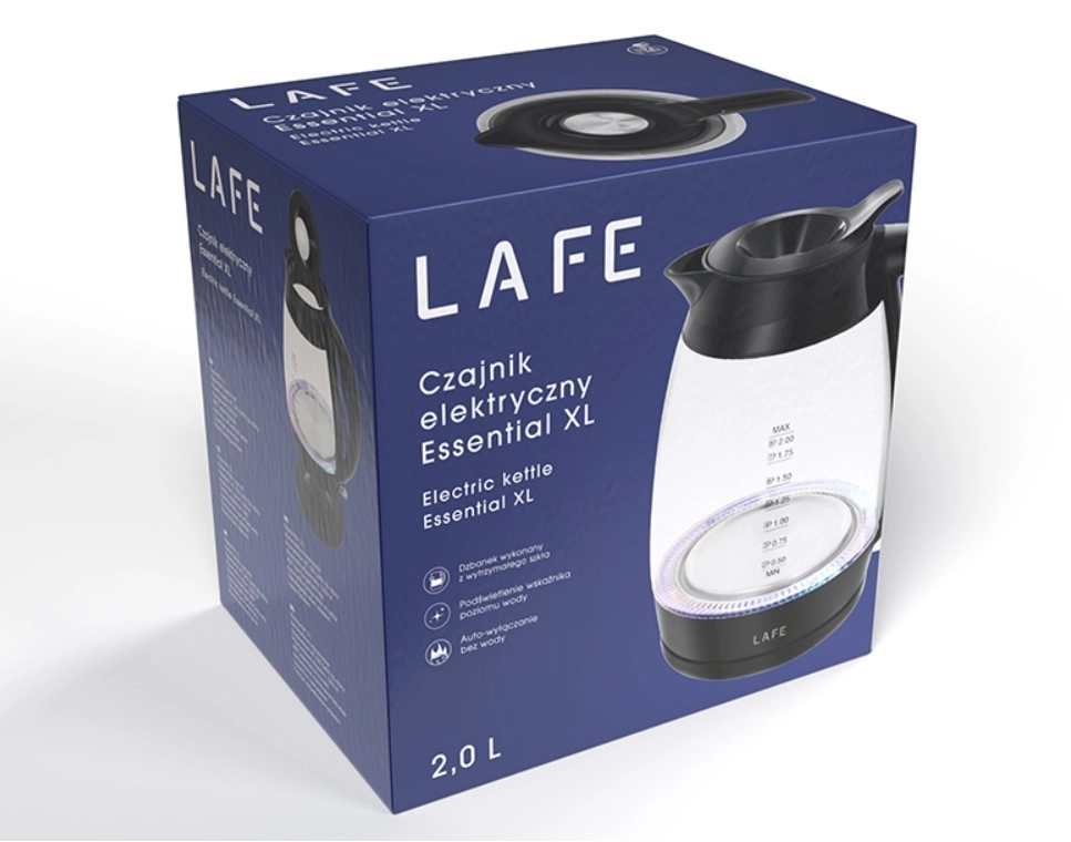Konvice LAFE Essential XL kombinuje moderní vzhled s praktičností. Odolné sklo umožňuje snadno kontrolovat hladinu vody, zatímco LED podsvícení signalizuje ohřev a dodává konvici styl. Díky výkonu 2200 W uvaří vodu během chvilky pro celou rodinu.