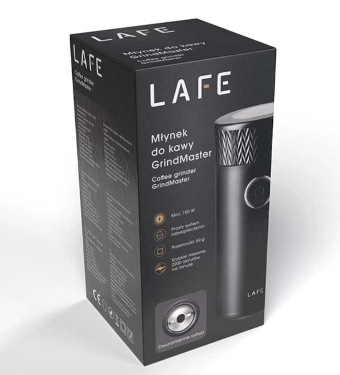 Užijte si vůni a chuť čerstvě namleté kávy každý den. Elektrický mlýnek na kávu LAFE GrindMaster nabízí jednoduché ovládání jedním tlačítkem, nerezové nože a komoru pro dlouhou životnost a bezpečnostní pojistku víka. Díky kapacitě cca 50 g připravíte snadno několik šálků aromatické kávy.