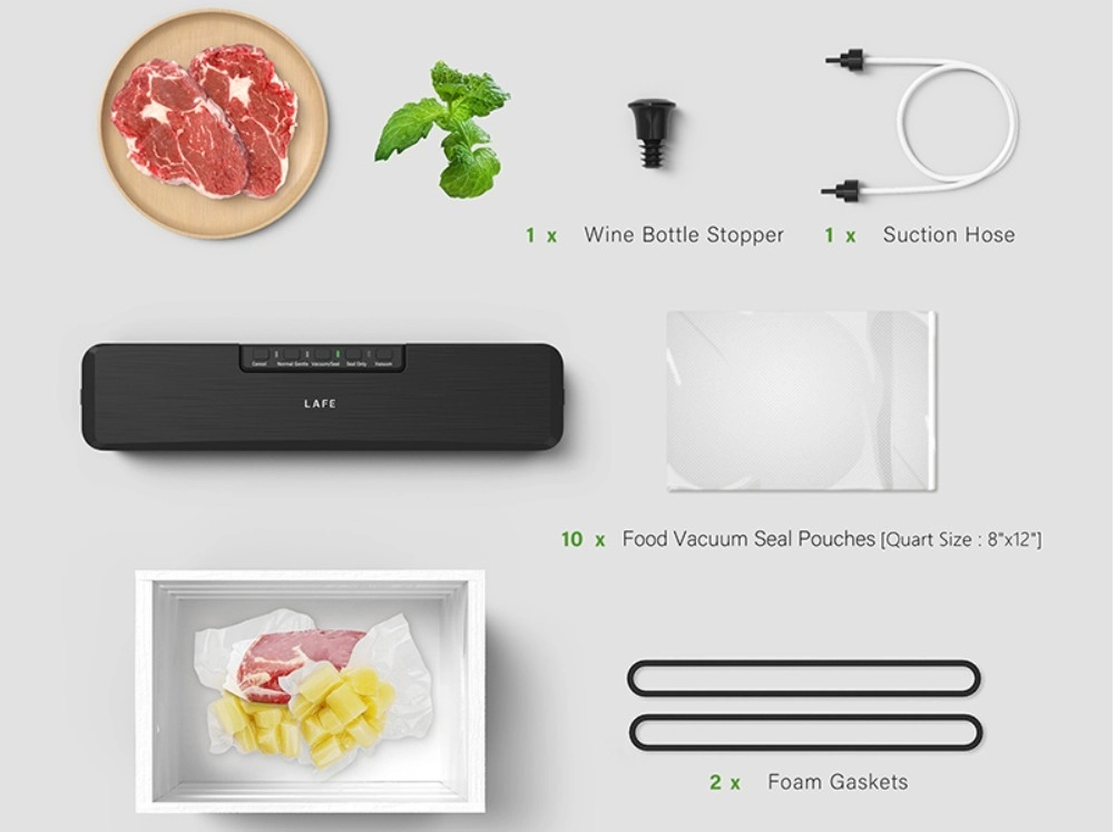 Vakuová svářečka LAFE VAC & Seal je praktický pomocník pro každou kuchyni. Díky výkonu 250 W se rychle zahřívá a její vakuová pumpa 6 l/min spolehlivě odsaje vzduch ze sáčků, což výrazně prodlužuje trvanlivost masa, ryb, sýrů, zeleniny i hotových jídel. Široký svár až 30 cm umožňuje balit i větší porce.