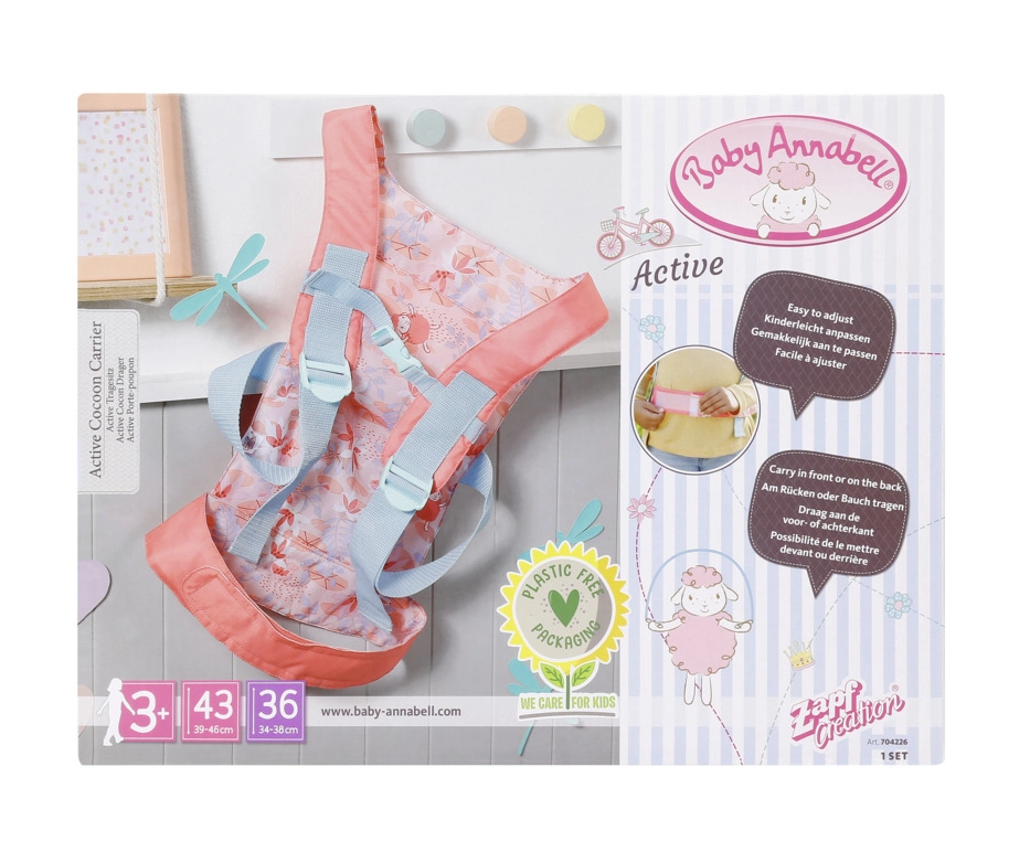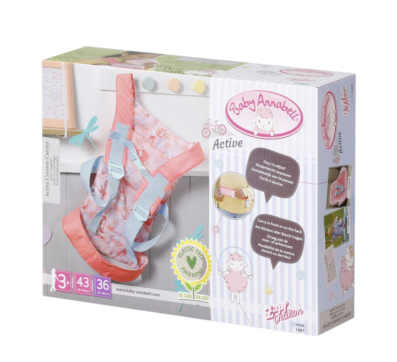 Praktická klokanka pro panenky BABY ANNABELL je skvělá pro malé pečovatele, kteří chtějí mít svou panenku stále u sebe. Díky možnostem nošení vpředu i na zádech a dvěma předním polohám sezení (čelem dopředu nebo k dítěti) si děti užijí pohodlné a bezpečné hraní na každý výlet.