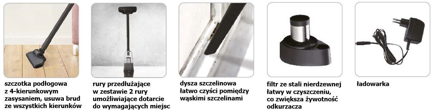 Díky síle sání 6,5 kPa a výkonu 100 W spolehlivě odstraní prach, drobky i nečistoty z podlah, koberců a těžko dostupných míst. Elegantní černé provedení zapadne do každého interiéru a lehká konstrukce umožňuje pohodlné manévrování i pod nábytkem.